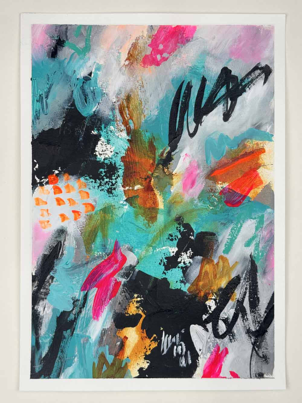 "Echoes of Colour I" is a bold and intuitive composition, full of layered marks, texture, and energy. Created in a moment of playful flow and spontaneity, each brushstroke was guided by intuition. It’s an invitation to uplift your spirit and bring a joyful spark of colour into your space.