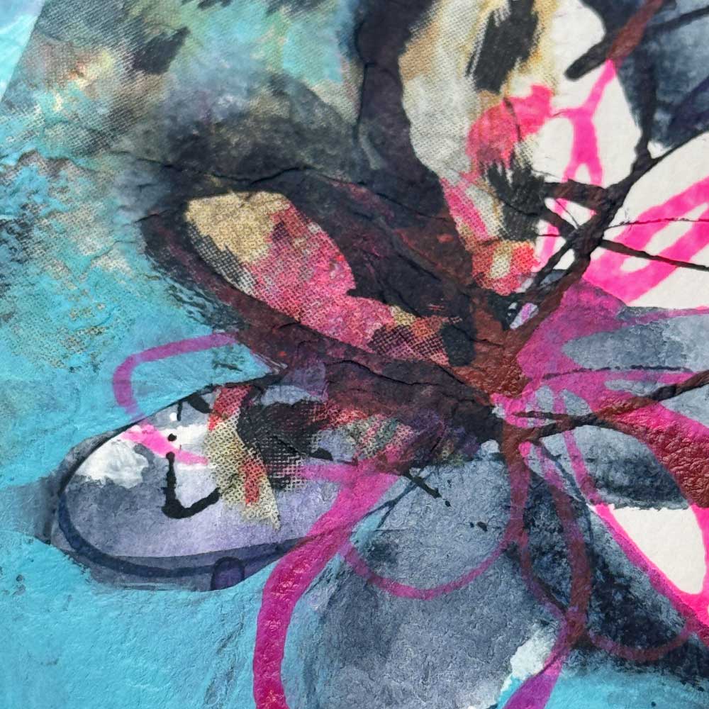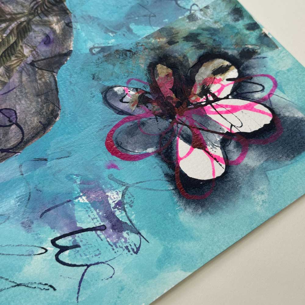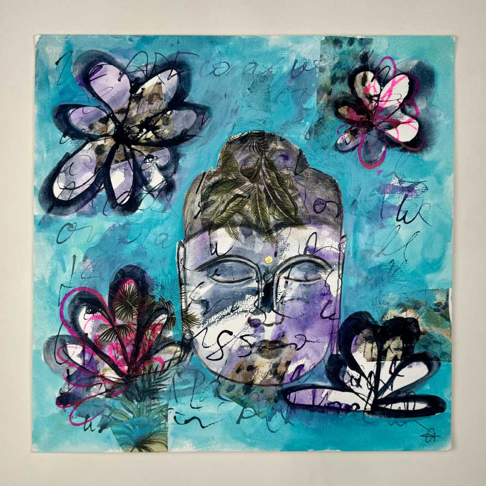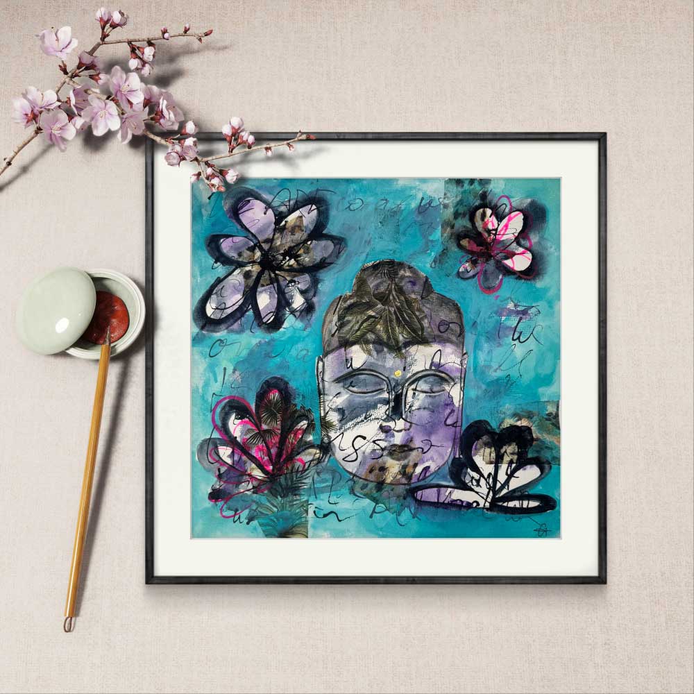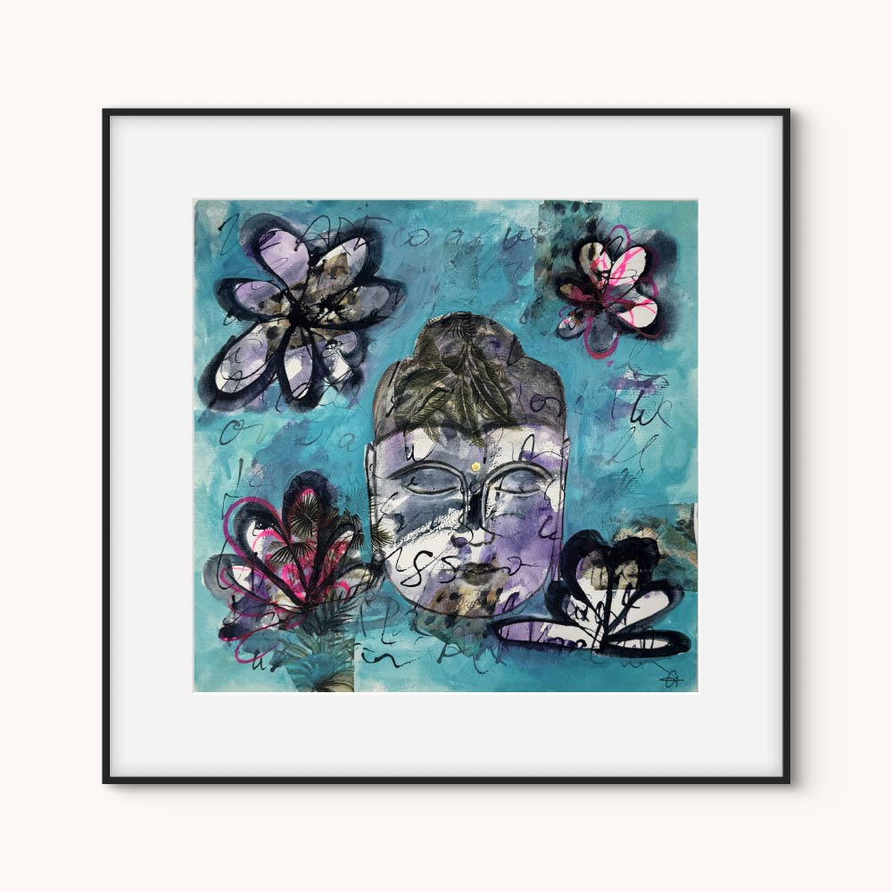 "Peaceful Mind" invites you into a state of deep calm and inner stillness. Vibrant turquoise tones and pink accents breathe life into the serenity, symbolising the beauty and vitality that arise from a quiet mind. A colourful reminder that peace can be both powerful and radiant.